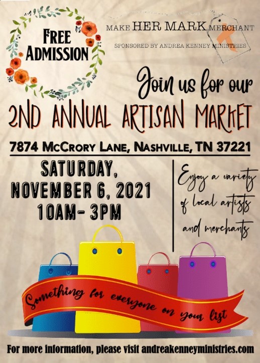 Join me in Nashville on Saturday, November the 6th, for the 2nd annual artisan market sponsored by Andrea Kenney Ministries!