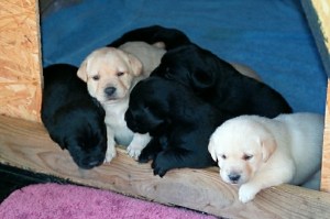 Many years have passed since then, and for a long time, I was utterly petless. Then, my son left for college, and my husband and I became empty nesters. I never thought I would be affected by the quietness of our home with just the two of us in it, but it hit me hard. Because of my blues, my husband brought home Sophie, a sweet black Labrador. Eventually, Sophie had a litter of puppies, and we added Misty and Dusty to our home. They are the yellow Labs in this photo. Cute, huh?